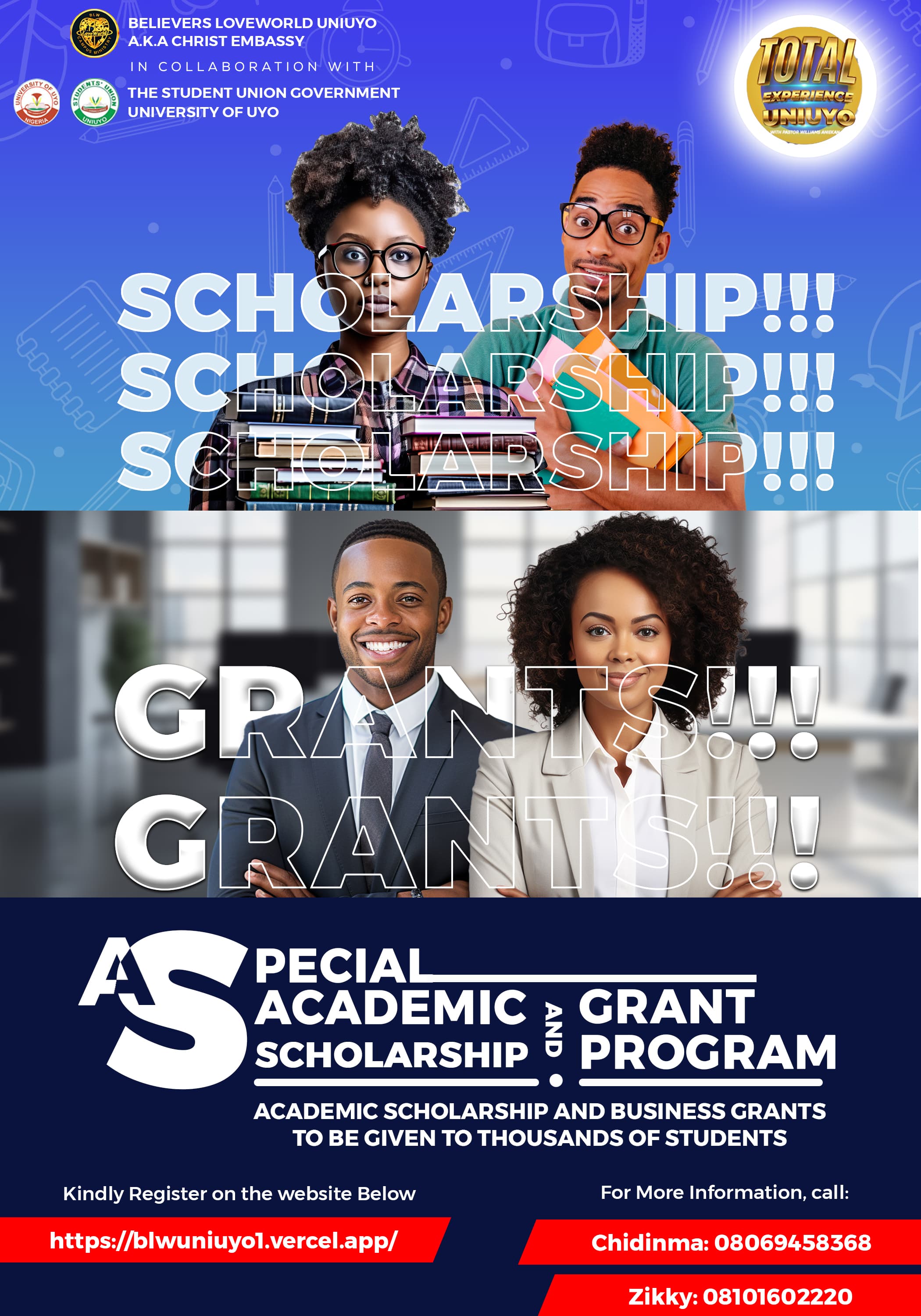 All students can register to be considered for the scholarship. Scholarship is strictly for only Uniuyo students. Fill the form below to register